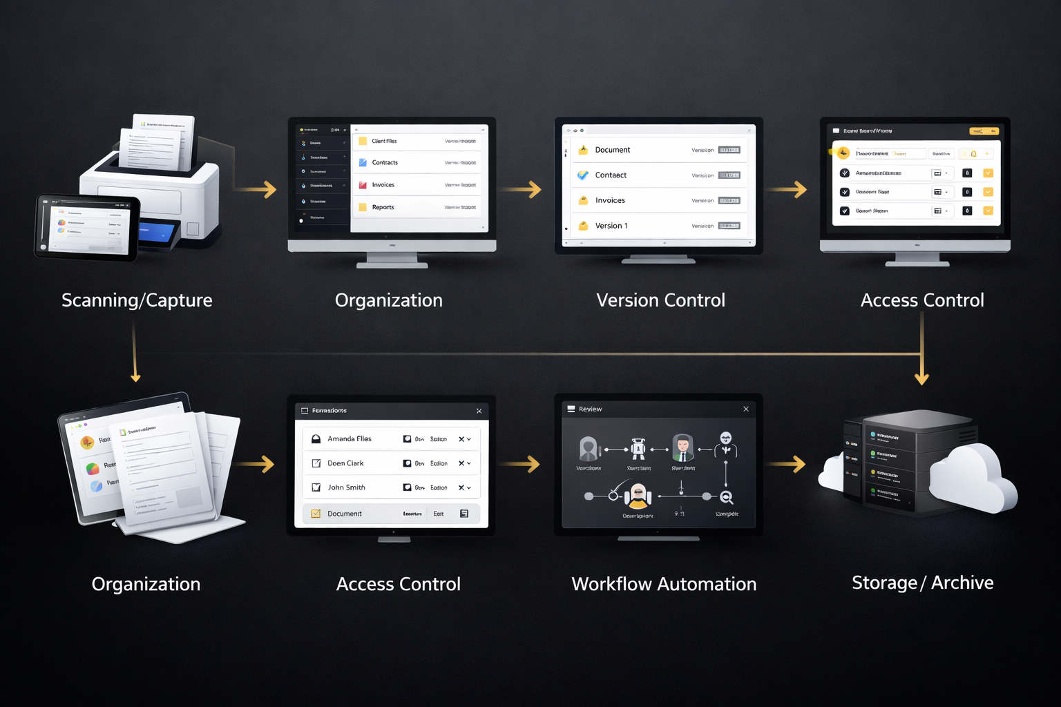 Once documents are captured, they are stored in a structured way using folders, tags, and metadata. A document management system allows users to categorize files based on department, project, date, or document type.