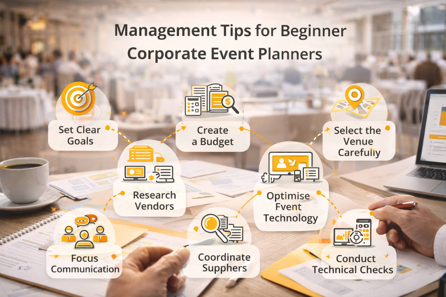 With experience and consistent improvement, new planners can confidently manage corporate events that deliver professional and memorable experiences.